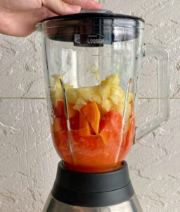 Next, you can also adjust the consistency of your papaya juice. Add some filtered water to thin the juice and dilute the flavor a little. This step is completely optional, but I’ve found that many people prefer it.